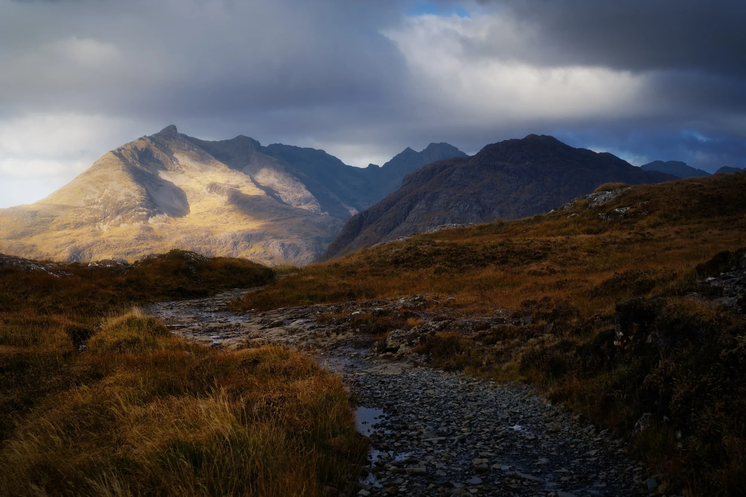 It’s possible to clamber right down into the valley bottom of Glencoe, which near its eastern end forms a steep and deep gorge. With my ultra-wide 9mm lens I was able to get a more unusual perspective looking from the gorge towards the top of the Gearr Aonach .